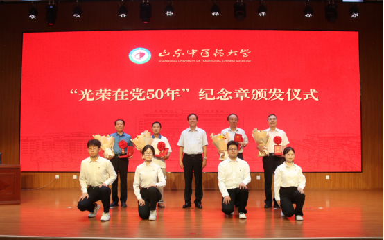 大会在奋进激昂的国歌声中拉开帷幕。在新党员宣誓、老党员重温入党誓词仪式环节中,全体党员面对党旗庄严宣誓。张立祥为“光荣在党50年”老党员代表颁发纪念章,金锋为毕业生党员代表赠送书籍,新发展党员为老党员代表献花。