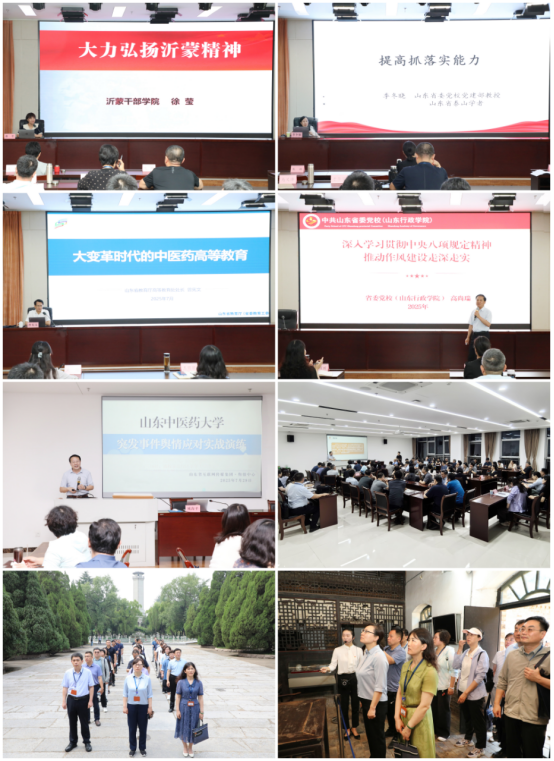 全体学员坚持以习近平新时代中国特色社会主义思想为指导,发扬理论联系实际的马克思主义学风,原原本本“系统学”,贯彻落实习近平总书记关于中医药、教育的重要论述和视察山东重要讲话精神,围绕推进教育科技人才一体化发展学习;带着问题“深入学”,与开展深入贯彻中央八项规定精神学习教育、省委巡视整改、省审计厅审计发现问题整改、高校突出问题系统整治相结合;剖析案例“对照学”,开展警示教育,教育引导广大党员干部将中央八项规定精神融入职责、融入日常、落到实处;互动交流“研讨学”,聚焦影响学校高质量发展绩效考核和“双高”考核的难题,探讨全面深化改革、完善内部治理和办学服务支撑保障、实现高质量发展的方向和路径;身临其境“实地学”,真切感受革命烈士不畏艰难、前仆后继的革命精神和沂蒙人民踊跃支前、无私奉献的伟大精神,深刻感悟沂蒙精神丰富内涵;融入传统“沉浸学”,深入了解银雀山汉墓竹简的历史价值与文化意义,赓续中华文脉,推进“两个结合”。
